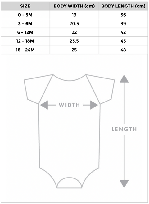 • Super comfy infant onesie made from beautifully soft 190GSM 100% cotton (Marles 15% polyester)